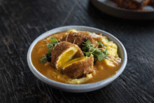 * A choice of either: our Turnip Banh Mi our Creamy Stoneground Grits with Tempura Poached Eggs, Smoked Tomato Sauce, and Collard Greens our Carrot Crepe with carrot curd, grape maple syrup, cream cheese butter